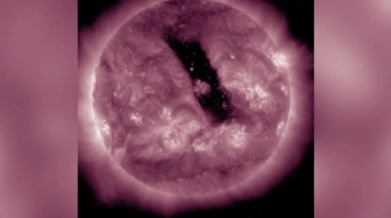 Крупная корональная дыра, наблюдающаяся на Солнце на протяжении четырёх месяцев, вновь вышла на сторону, обращённую к Земле, и может вызвать слабые геомагнитные возмущения в предстоящие выходные. Об этом сообщили в лаборатории солнечной астрономии Института космических исследований РАН.